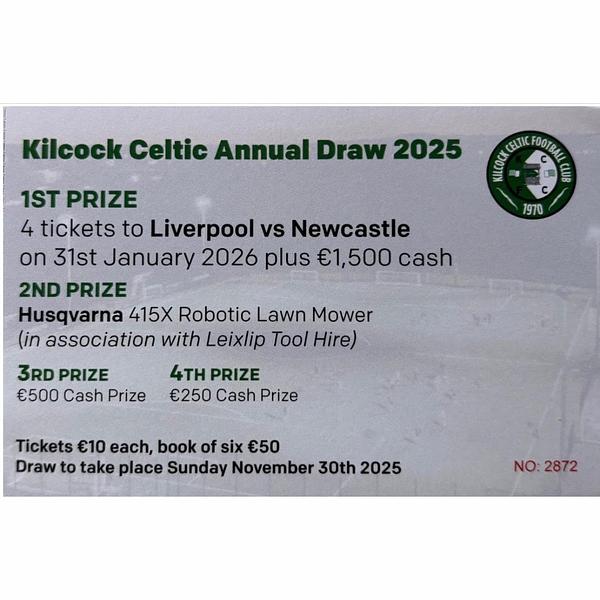 Every ticket counts — your support will help us continue to build the future of Kilcock Celtic FC!