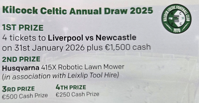 1st Prize: 4 tickets to see Liverpool play Newcastle on 26th January PLUS €1500 cash